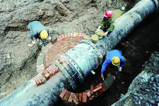 由于河南省內(nèi)連日大雨,導(dǎo)致商丘永城市自來水管網(wǎng)的橡膠接頭水壓過大崩裂,近日,由新躍供水生產(chǎn)的不銹鋼橡膠軟接頭運(yùn)往永城,實(shí)施安裝。